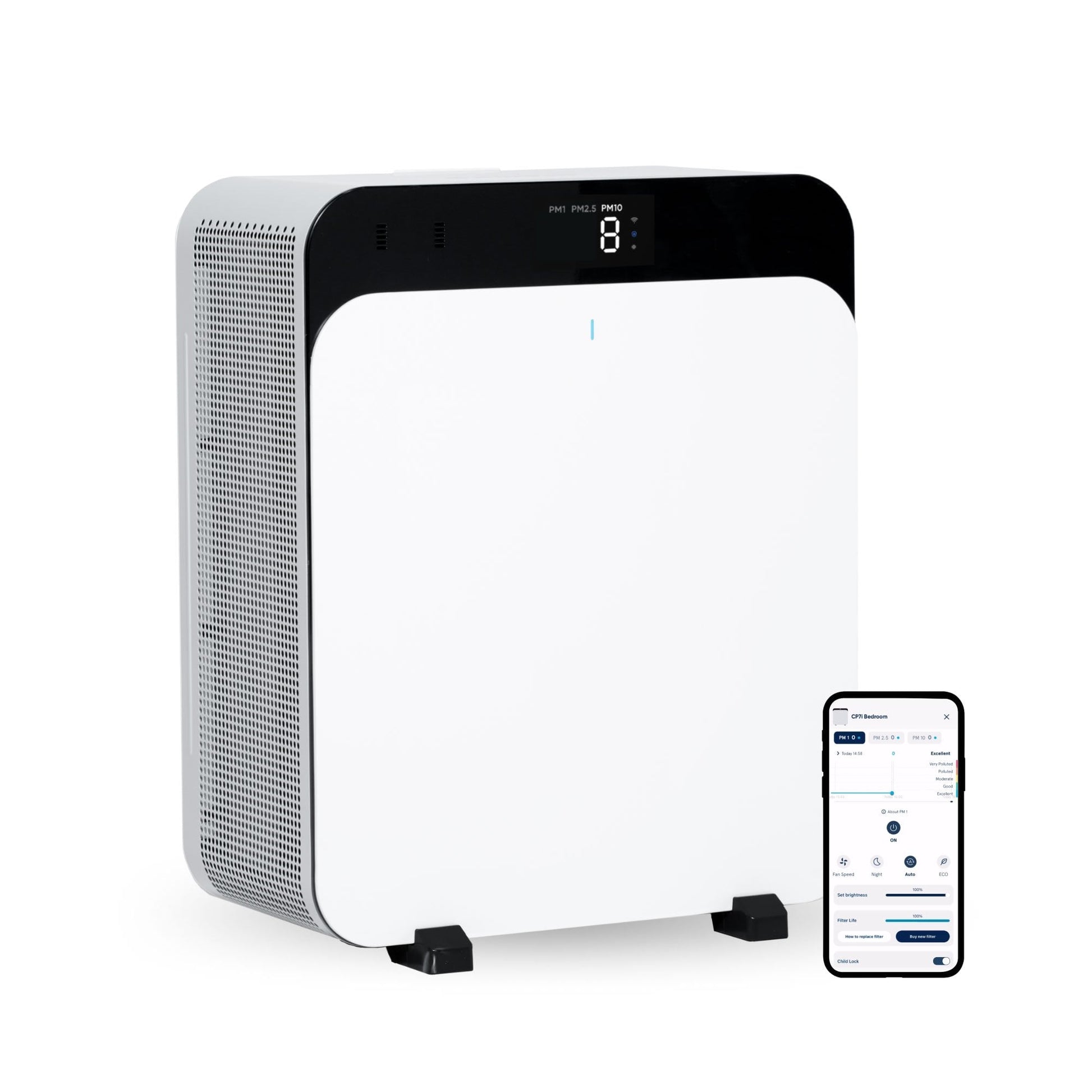 Accurately tracks your filter lifetime based on pollutant levels and alerts when it’s time to replace your filter.